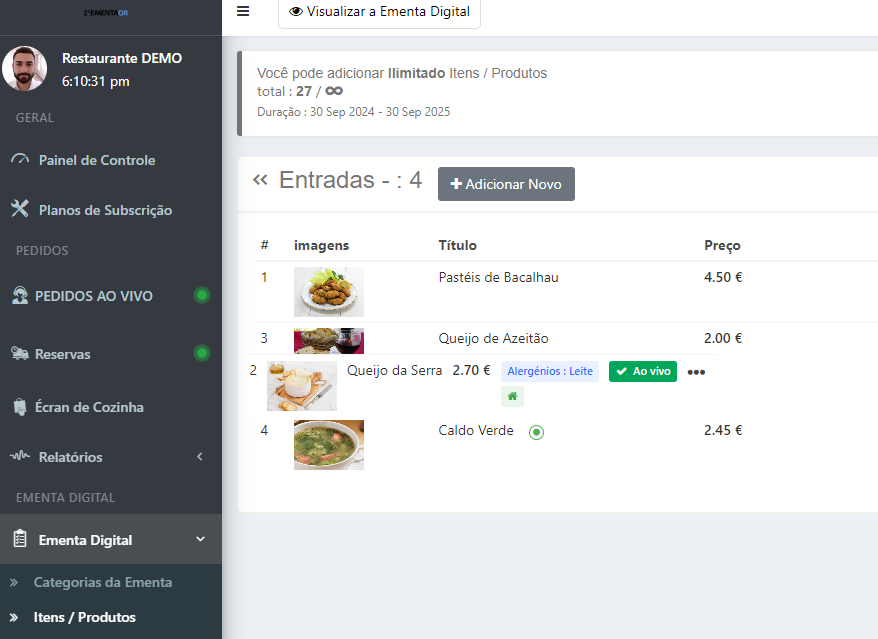 Sim, é tão simples como arrastar o produto para a nova posição na listagem da ementa. O mesmo acontece com a ordem das categorias: