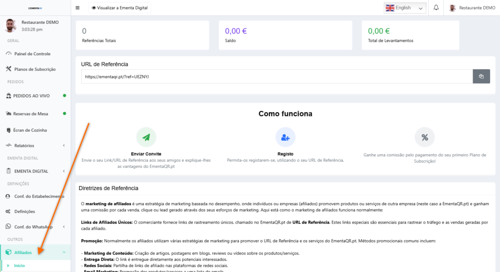 No EmentaQR.pt, cada afiliado recebe um URL de Referência exclusivo que rastreia o tráfego e as conversões geradas pelas suas atividades promocionais. Estes links são essenciais para identificar as vendas e leads provenientes de cada parceiro afiliado.