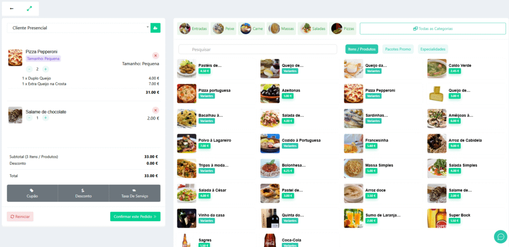 O módulo POS está desenhado para dar maior controlo ao staff do restaurante, agilizando o atendimento presencial e facilitando o registo manual de encomendas, sem depender do uso do QR Code pelo cliente.